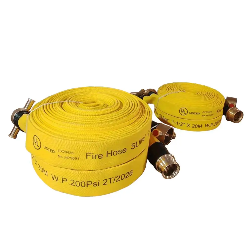 สายดับเพลิงผ้าใบสีเหลือง ขนาด 2.5 นิ้ว ยาว 30 เมตร พร้อมข้อต่อทองเหลือง 2.5 นิ้ว ทนทาน ทนทานต่อแสงแดด รังสีอัลตราไวโอเลต (UV) ก๊าซโอโซน และสภาพความเป็นกรด-ด่างของน้ำทะเล สามารถทนสภาวะอากาศ ช่วงอุณหภูมิ -40°C ถึง 120°C เหมาะสำหรับใช้งาน งานดับเพลิง และงานอุตสาหกรรม งานทางทหาร งานเกษตรกรรม งานก่อสร้าง และงานทั่วไป ได้รับมาตรฐาน UL