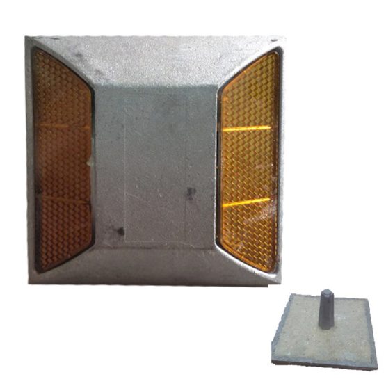 หมุดสะท้อนแสง ผลิตจากวัสดุอลูมิเนียม อัลลอย วัสดุสะท้อนแสงคุณภาพ 3M ขนาด 10x10x4 ซม. ทนทานต่อแรงกดทับได้ถึง 30 ถึง 40 ตัน ทนได้ทุกสภาพอากาศ อายุการใช้งานนาน