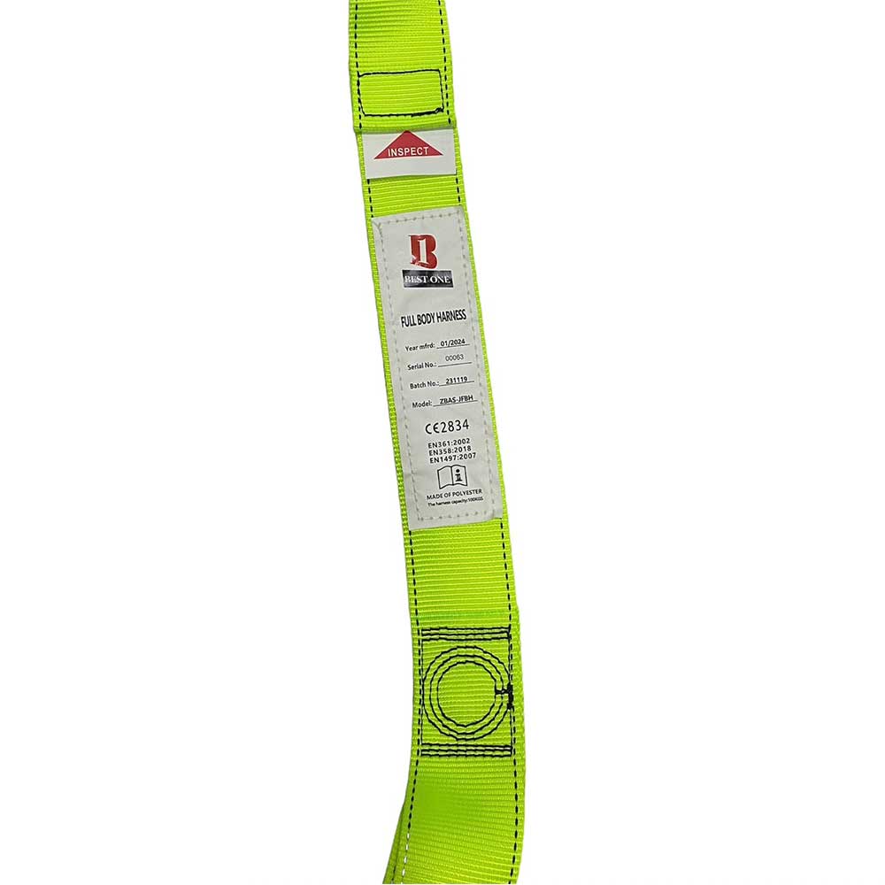 เข็มขัดกันตกเต็มตัวตะขอคู่ ยี่ห้อ BEST ONE นี้ ตัวเข็มขัดผลิตจาก เส้นในโพลีเอสเตอร์คุณภาพดี ซึ่งมีความกว้าง 45 mm. มีความแข็งแรงทนทานสูง รอบตัวเข็มขัดจะมี D ring จำนวน 5 จุด เพื่อสามารถให้ผู้ใช้ ใช้งานได้อย่างคล่องตัวและเพิ่มความปลอดภัยที่อาจจะเกิดขึ้นขณะปฏิบัติงาน เข็มขัดกันตกเต็มตัวสามารถปรับระดับความกว้างได้ทั้งตัว เพื่อให้กระชับกับผู้สวมใส่ อีกทั้งยังเสริม Back support ช่วยรองรับน้ำหนักขณะใช้งาน โดยตัวเข็มขัดสามารถรับน้ำหนักได้ 15 KN (1 KN เท่ากับ 9.8 KG.)