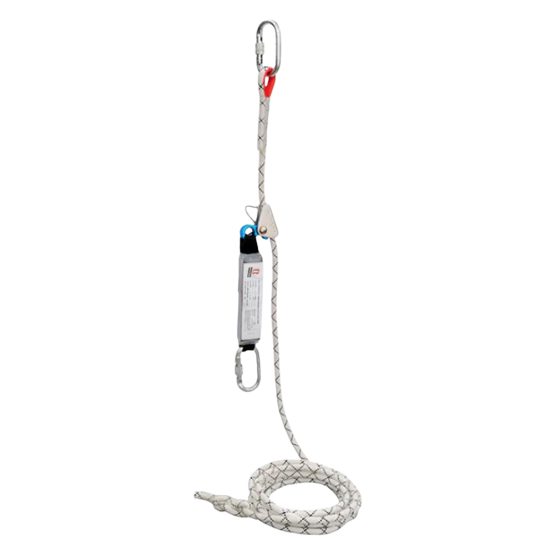 เชือกผลิตจาก เส้นใย Polyester ขนาดเส้นผ่าศูนย์กลาง 12 mm. ยาว 30 m. เสริมตัวดูดซับกระแทก (Absorber) อุปกรณ์จับยึดเส้นเชือกแบบล็อกอัตโนมัติ พร้อมห่วงคาราบิเนอร์ เพื่อเชื่อมต่อกับเข็มขัดนิรภัย รับน้ำหนักได้ 30 kN ได้รับมาตรฐาน CE EN353-2:2002