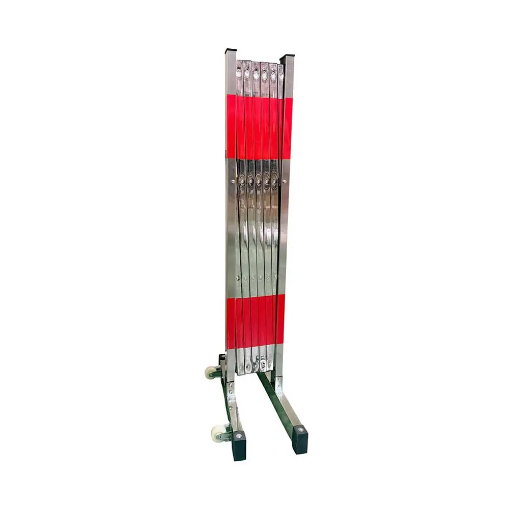 แผงกั้นสแตนเลสยืดหดได้ มีล้อ แถบสีแดง